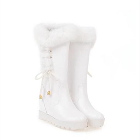 Women's winter faux fur warm chunky platform knee high snow boots