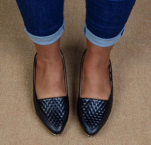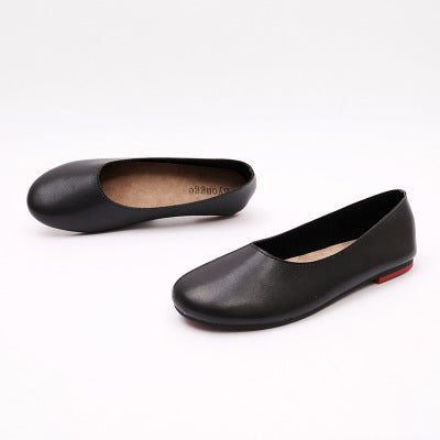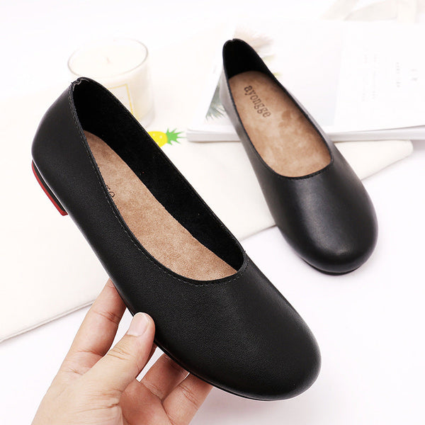 Soft Slip-on Leather Flats Black Flat Shoes For Women