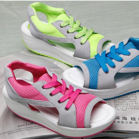 Roman peep toe platform sandals ankle strap hollow wedge sandals