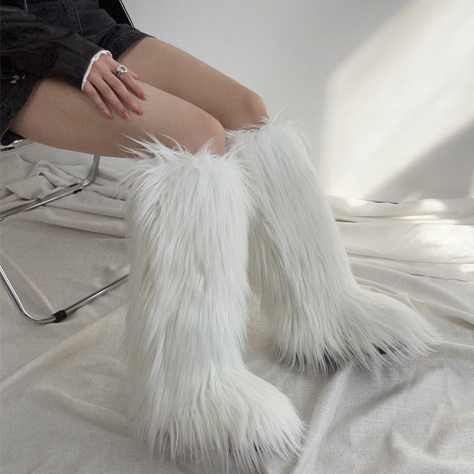 Women's faux fur over the knee high snow boots