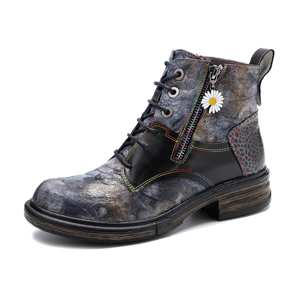 Women's vintage round toe low cut front lace-up soft loafers shoes