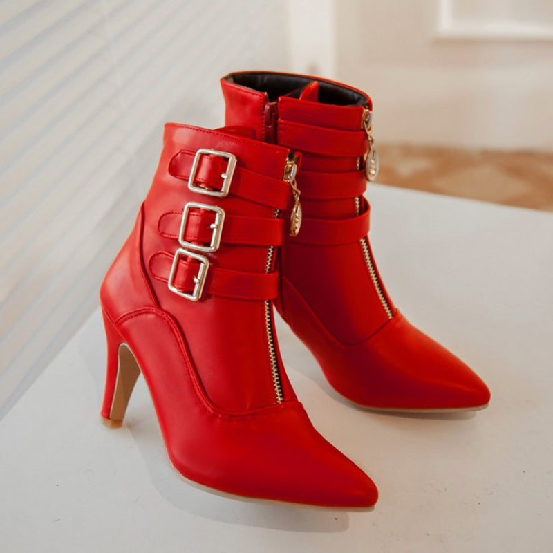 Women's chunky heels thick platform ankle boots with one buckle strap
