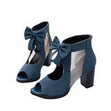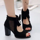 Cute bow chunky sandals peep toe cut-out chunky heels sexy