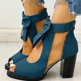 Cute bow chunky sandals | Peep toe cut-out chunky heels sexy