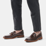 Business formal loafers wood grainy stylish slip on tassel loafers