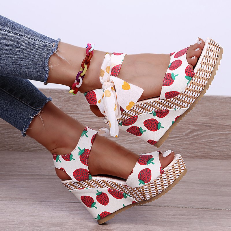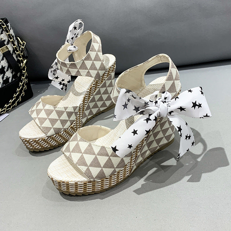 Cute bowknot platform sandals lace up peep toe wedge sandals