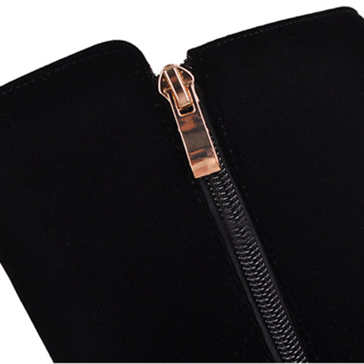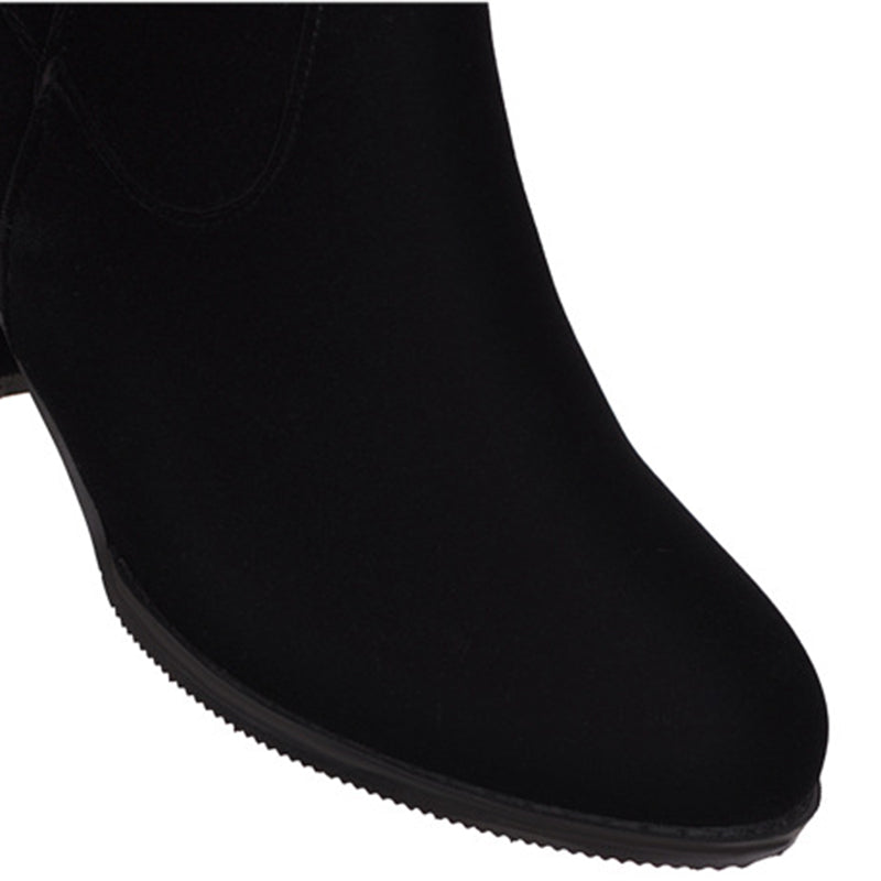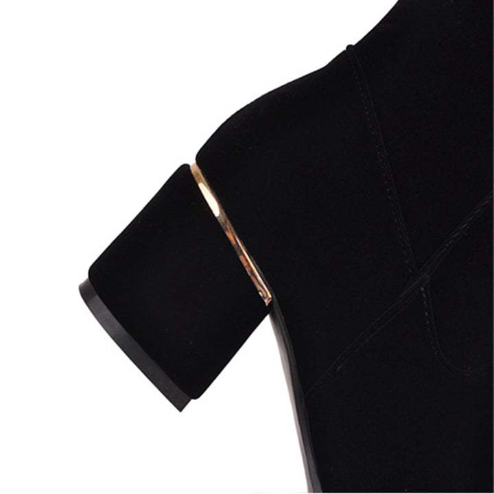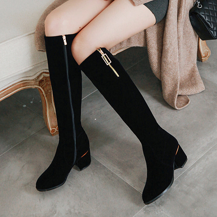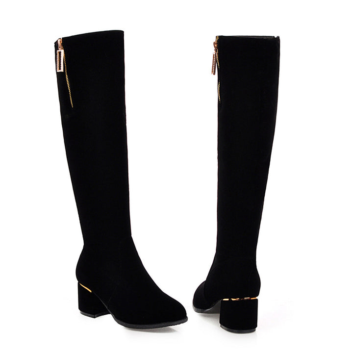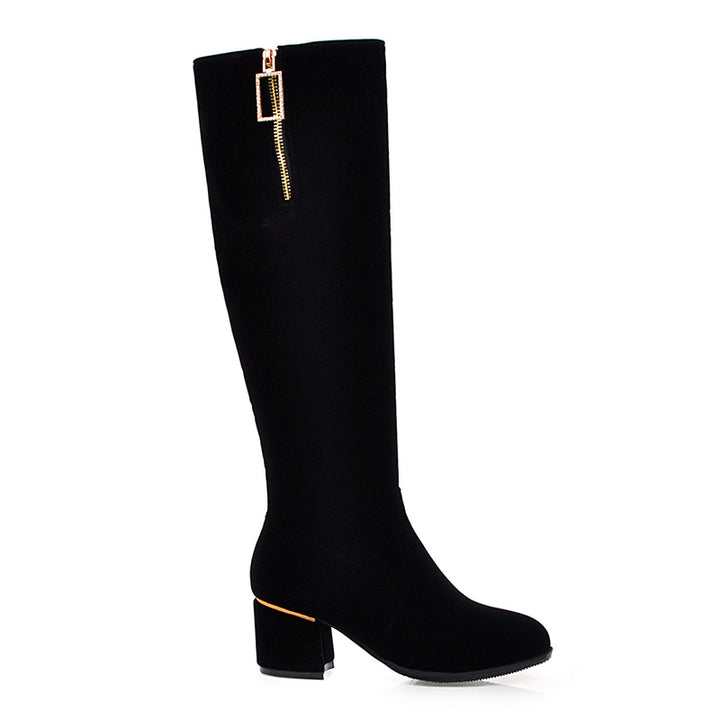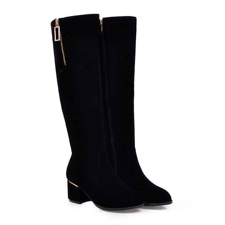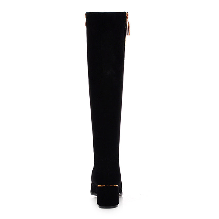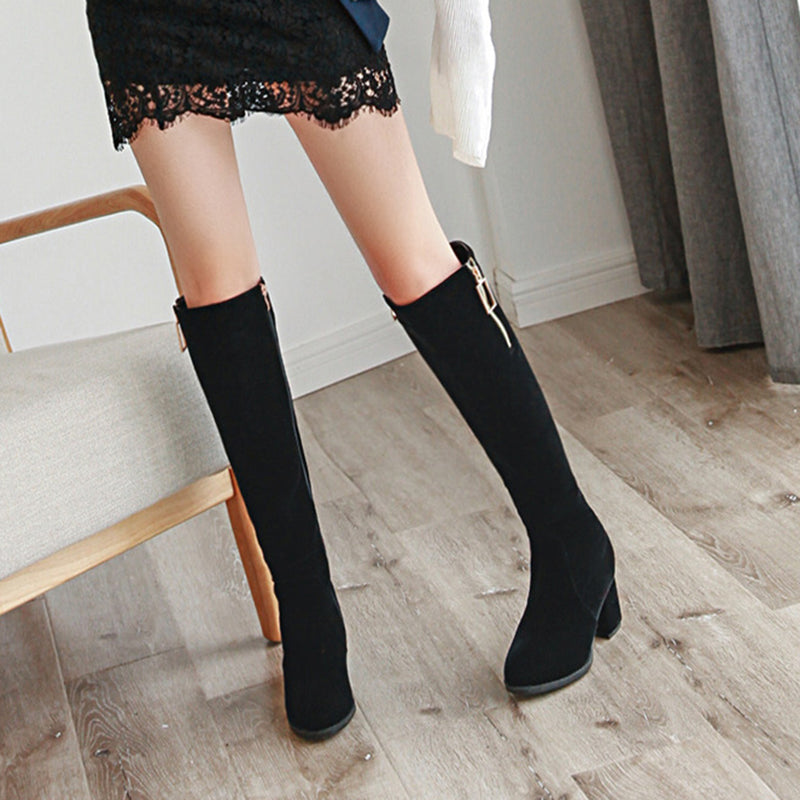 Elegant black knee high boots | Suede chunky heels dress boots | Block heels riding boots