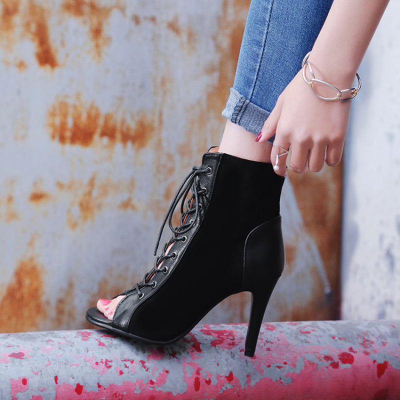 High heel boots sandals peep toe hollow crisscross lace up sandals