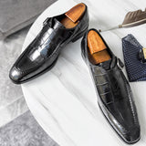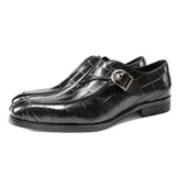 Men leather loafers | stylish embossed burgundy loafers | buckle strap slip on loafers
