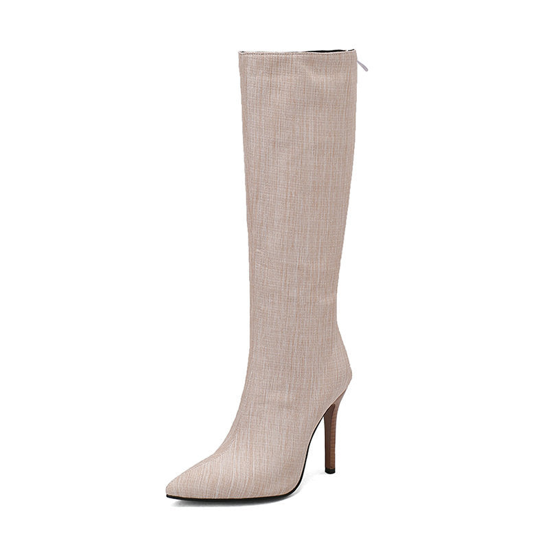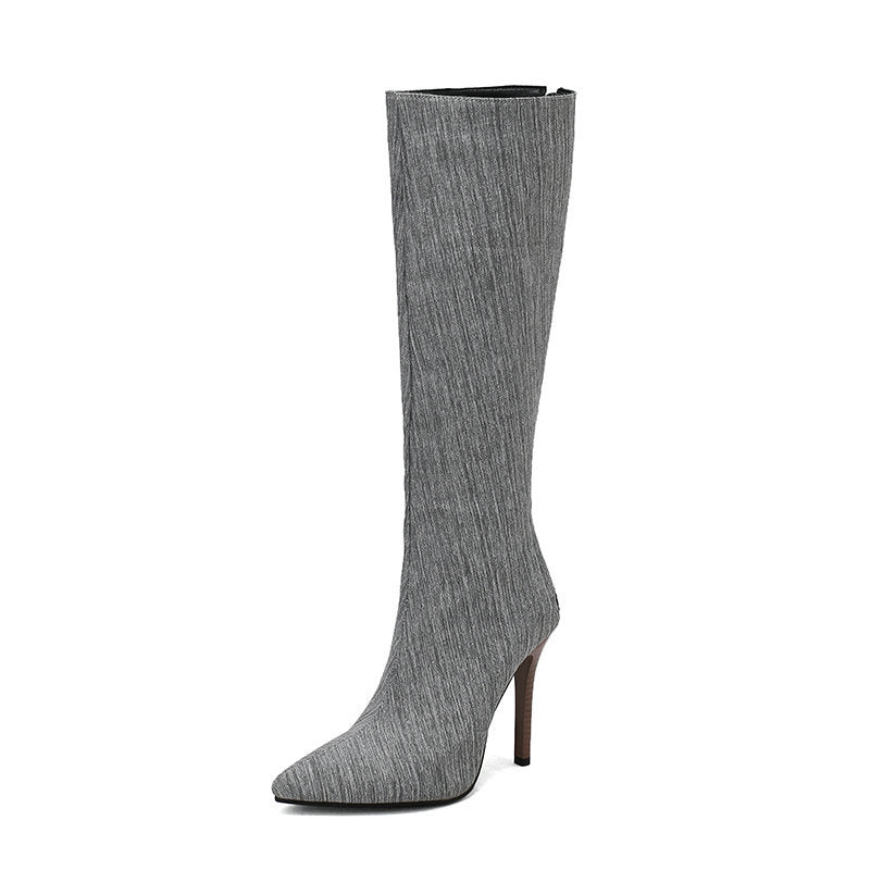 Gray Stiletto heels pointed toe knee high boots with back zipper
