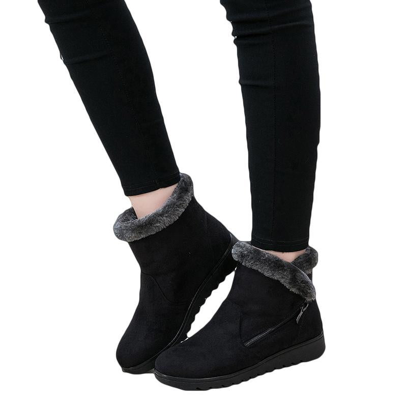 Women ankle snow boots | Winter fur boots | Slip on flat zipper boots