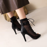 Women heel sandal ankle strap stiletto hollow peep toe lace up sandals
