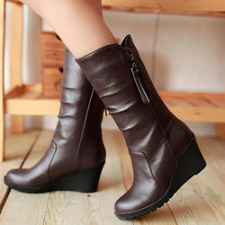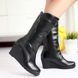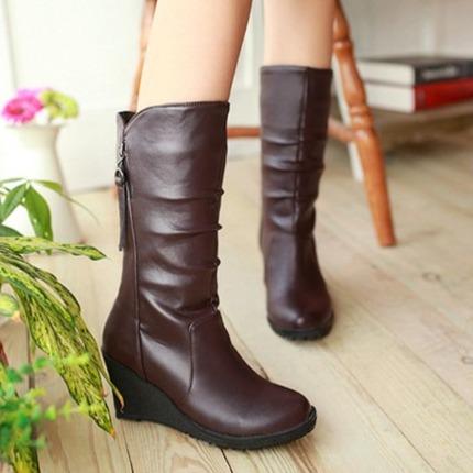 Women retro slouch mid calf wedge boots | Tassel zipper mid calf boots