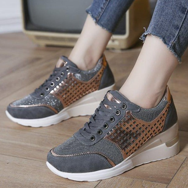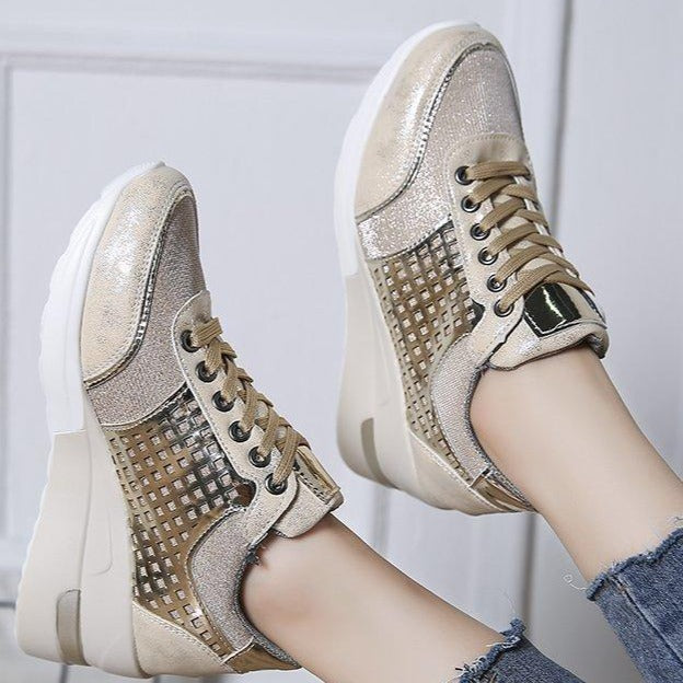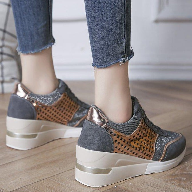 Women's casual wedge sneakers | Hollow sequined running shoes | Comfort tennis shoes for walking