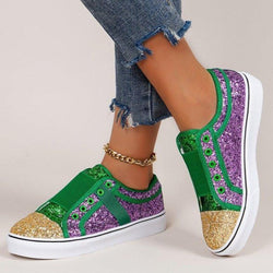 Women's colorful patchwork rhinestone glitter slip on canvas shoes
