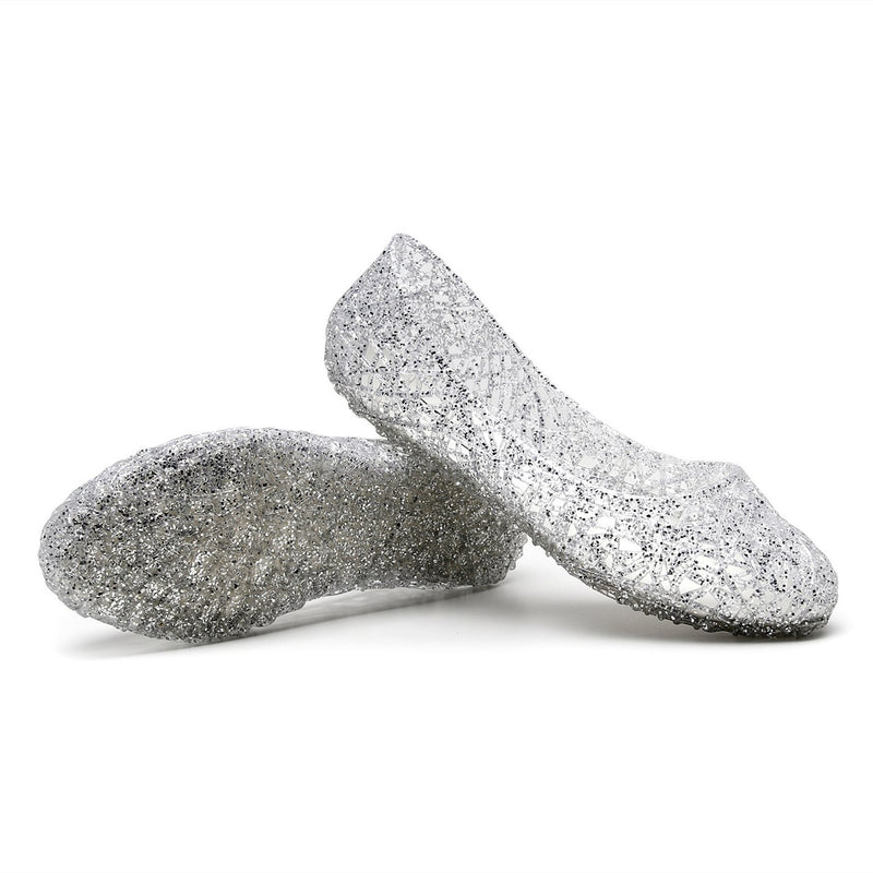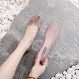 Women's hollow rhinestone jelly flats cute slip on shoes