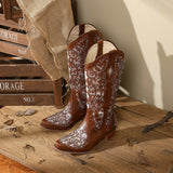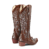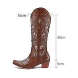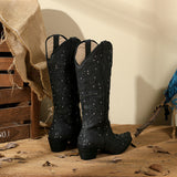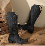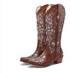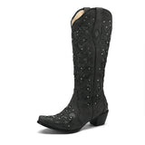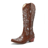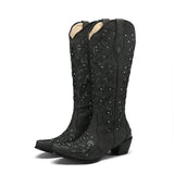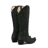 Women's rhinestone embroidery mid calf cowboy boots wedding western boots