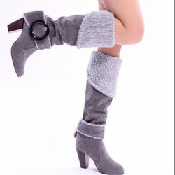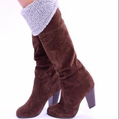 Women's suede fold down cuff knee high boots